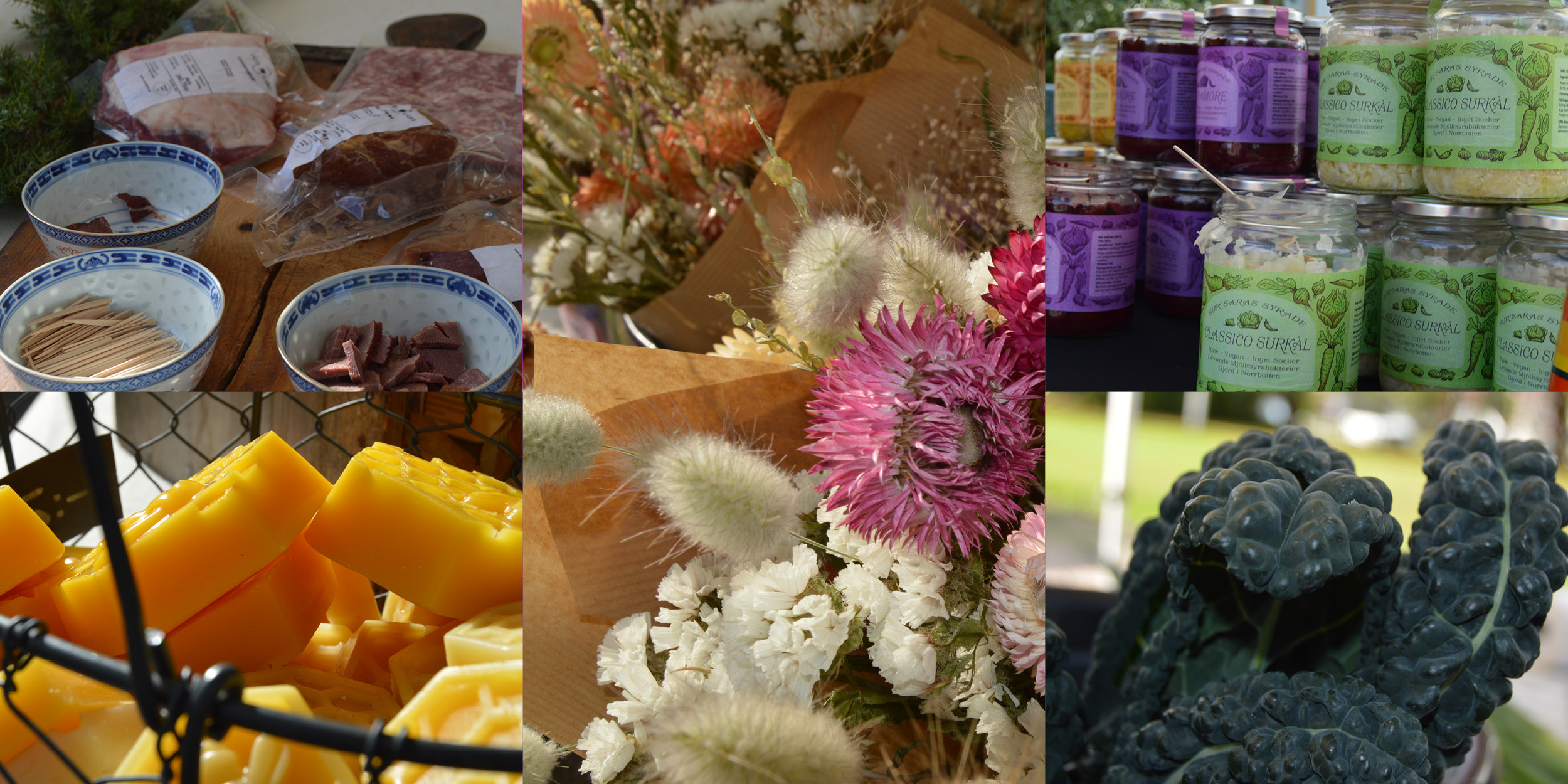 Lokalproducerat kött, blommor, honung och grönsaker kunde handlas direkt från närområdets producenter och odlare.